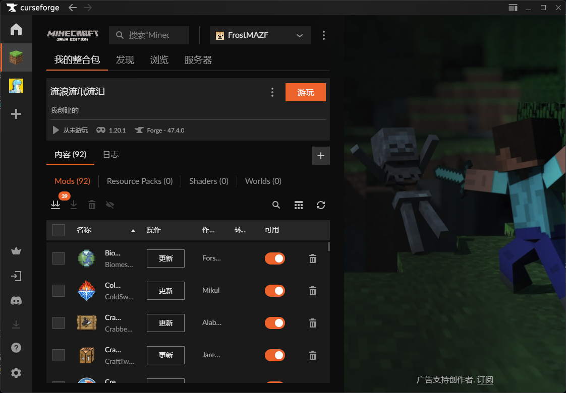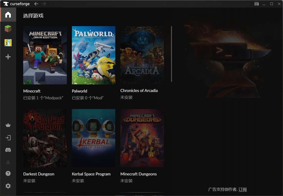 安装完成CurseForge以后打开,主界面是这样的