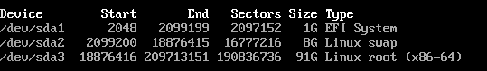 然后输入p查看刚刚更改的分区,如果按照上面的方法创建,那么到最后应该是这样的: