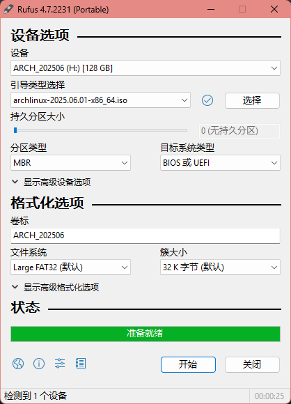 下载完成以后,如果是装到实机上的话,可以先拿一个U盘用rufus做一个安装介质,当然也可以直接在U盘上面装一个ArchLinux,或者使用虚拟机安装,都是可以的。