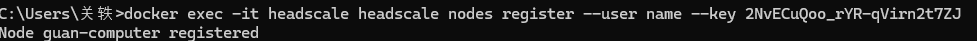 1 | docker exec -it headscale headscale user create 你的用户名 |